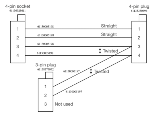 The wiring itself is pretty simple, and if you can wait for delivery from China then the plugs/sockets are inexpensive. Here is the 3-pin plug/socket for the FLA module and here is the 4-pin plug/socket for the RLS extension cable. Side note: always go with AliExpress Standard Shipping, not the default postal service shipping. It may cost a little more but it’s vastly quicker in my experience.